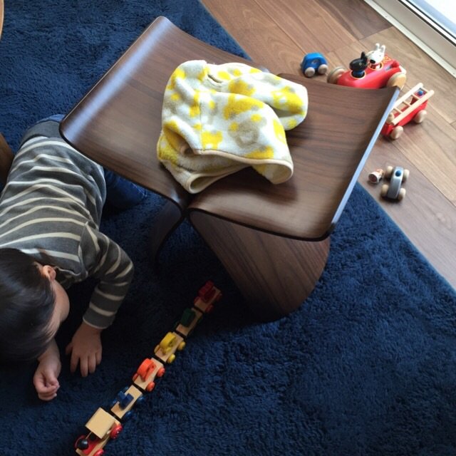 大切にするぞ、死ぬまで使い続けるぞ、と思ってたら『これとってもいいね〜〜これぼくの椅子にする〜〜』と長男に目をつけられまして…そして次男も戯れる始末…(もちろんM氏も試し座り)