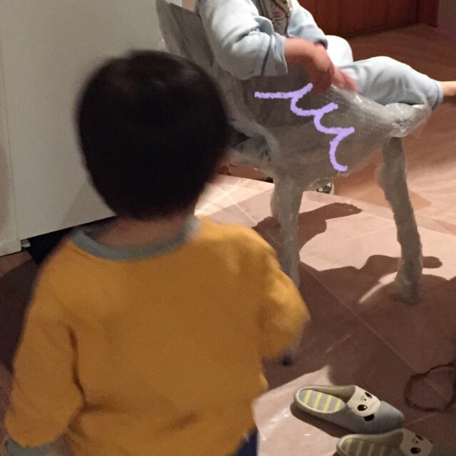 昨年末にやってきたバタさんも子供が座ったり、子供と遊んだり、物を載せてくれたり、今ではすっかり家族の仲間となっています。